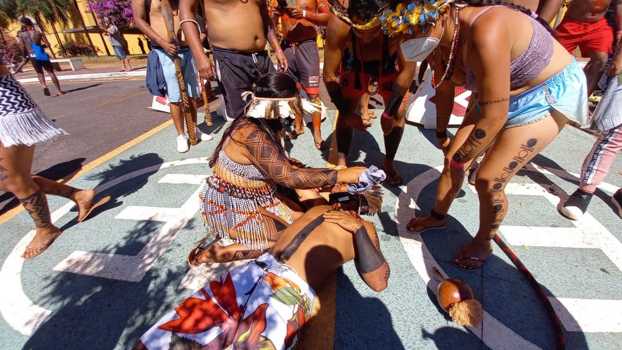 Brazil-Riot troops are attacking indigenous families who are peacefully protesting in Brasília, near the National Congress, against the PL 490 a project that ends the demarcation of indigenous lands, favoring illegal mining.